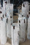 201350 kokers in strandzand van Schiermonnikoog met aangespoeld roest en visnet, prijs geldt per zandloper. De zandloper staat in een transparante koker.